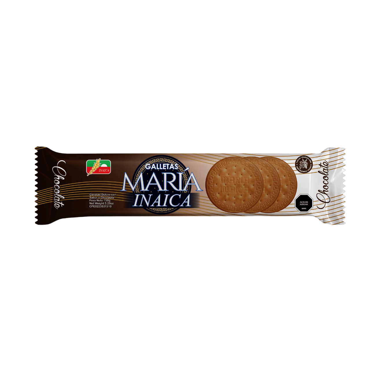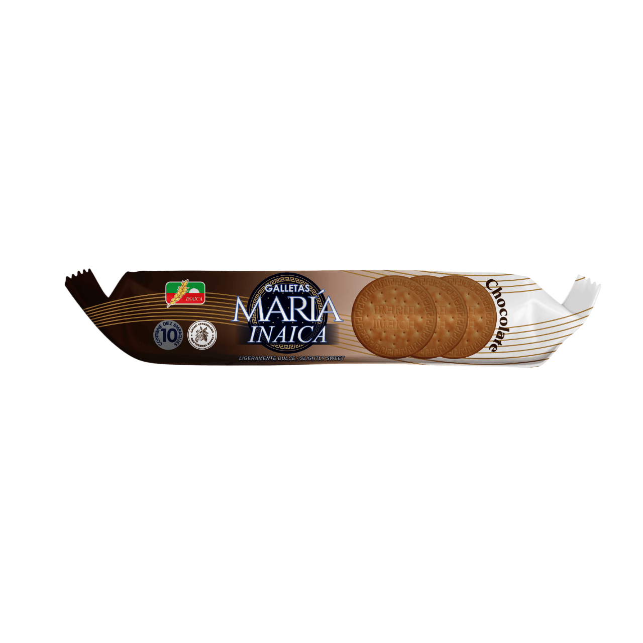 Harina de trigo, Manteca Vegetal, Metabisulfito de Sodio, Sal, Bicarbonato de Sodio, Bicarbonato de Amonio, Lecitina de Soya, Esencia de Chocolate, Laca Marron, Cacao en